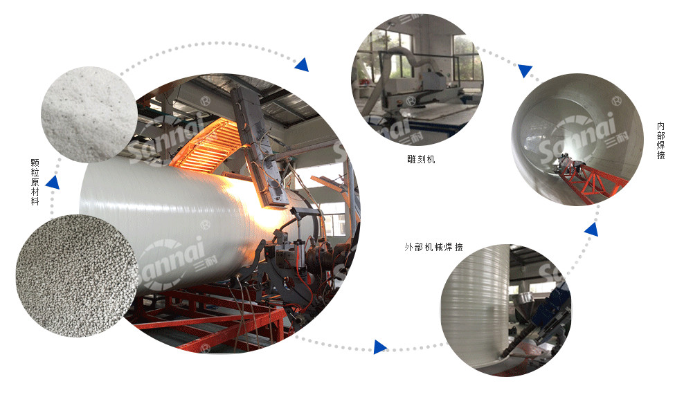 采用擠出纏繞無(wú)焊縫機(jī)組,自動(dòng)化焊接技術(shù)及生產(chǎn)裝備